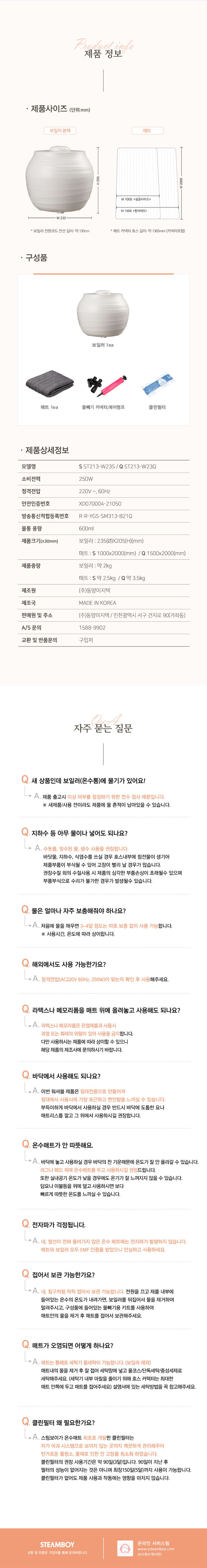 [스팀보이] 온수매트 ST213(퀸)